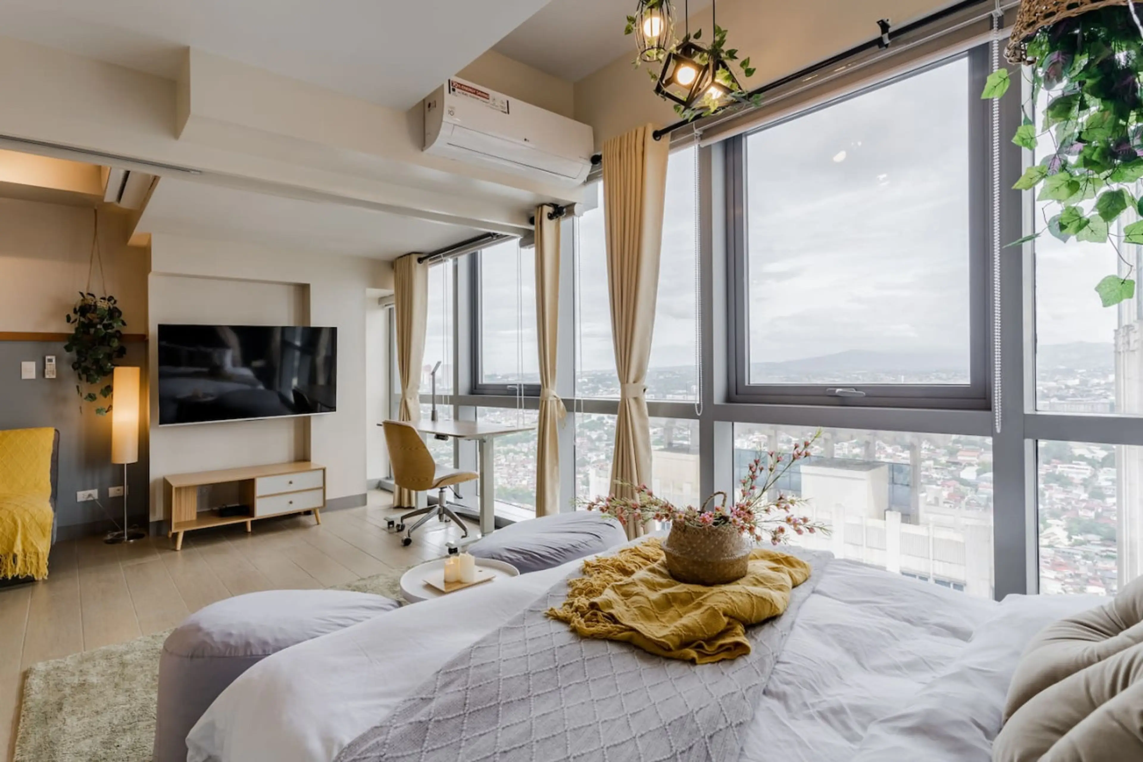 Fully furnished unit with divider for bedroom. Walking distance to groceries, convenience stores, restaurants, malls, banks, bars. Active night life! ❤ Pool, Sauna & Gym Access (w/ fee) ❤ 55" 4k UHD TV + A/C + Workspace ❤ Streaming apps available using your own account ❤ Coffee, fresh towels, and e...